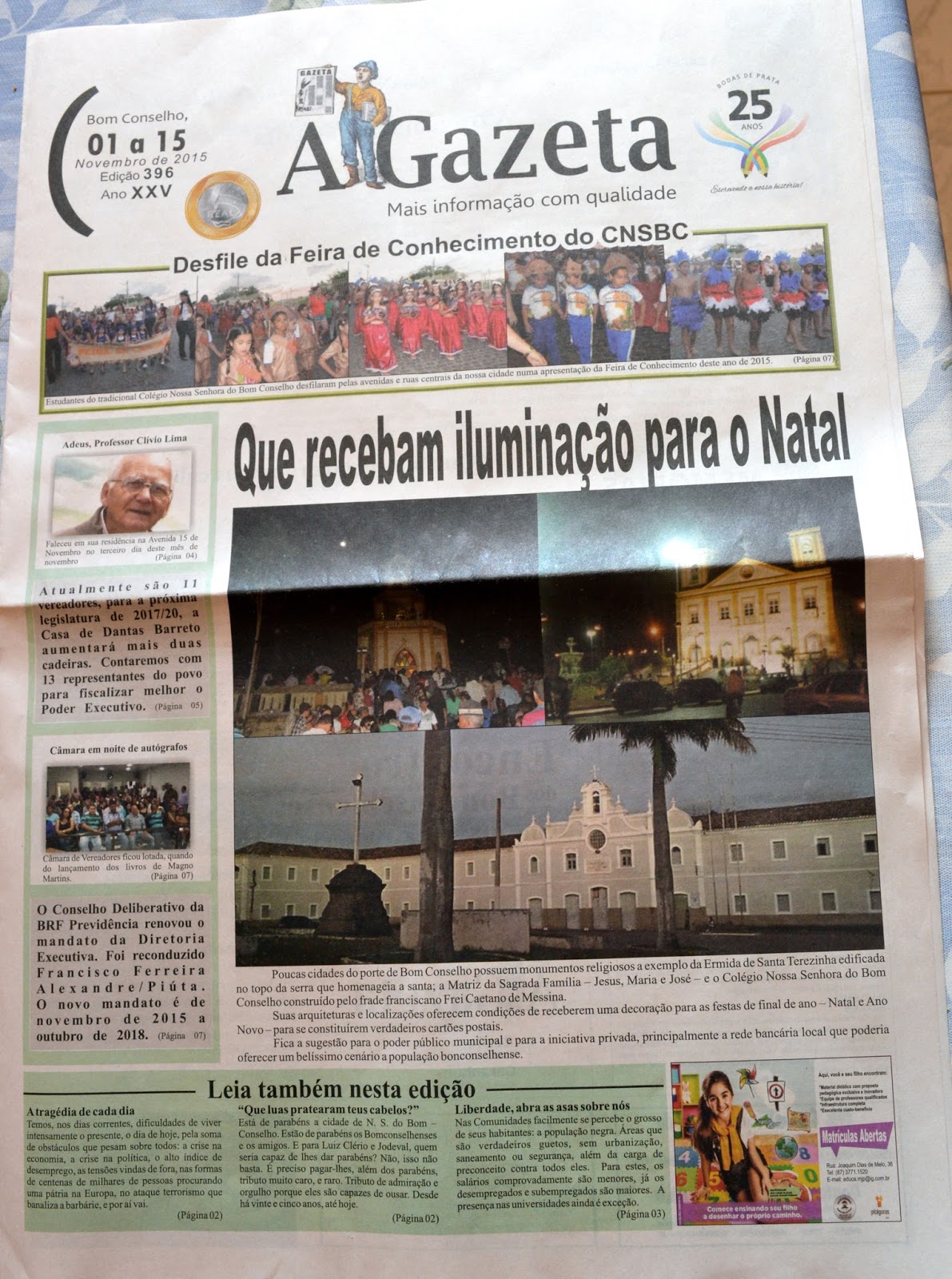 A Gazeta. Há 25 anos escrevendo a história de Bom Conselho.