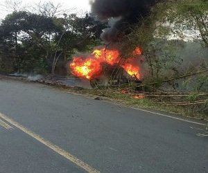 Ainda não há informações sobre as circunstâncias do acidente, mas, de acordo com a PRE, o caminhão-tanque que estava carregado de gasolina tombou em uma curva, caiu em uma ribanceira e pegou fogo.