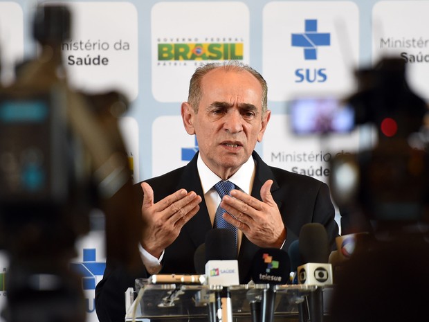 | O ministro da saúde Marcelo Castro fala durante reunião entre representantes de institutos de pesquisa do Brasil e dos EUA para discutir ações contra o vírus zika em Brasília (Foto: Evaristo Sa/AFP) |
