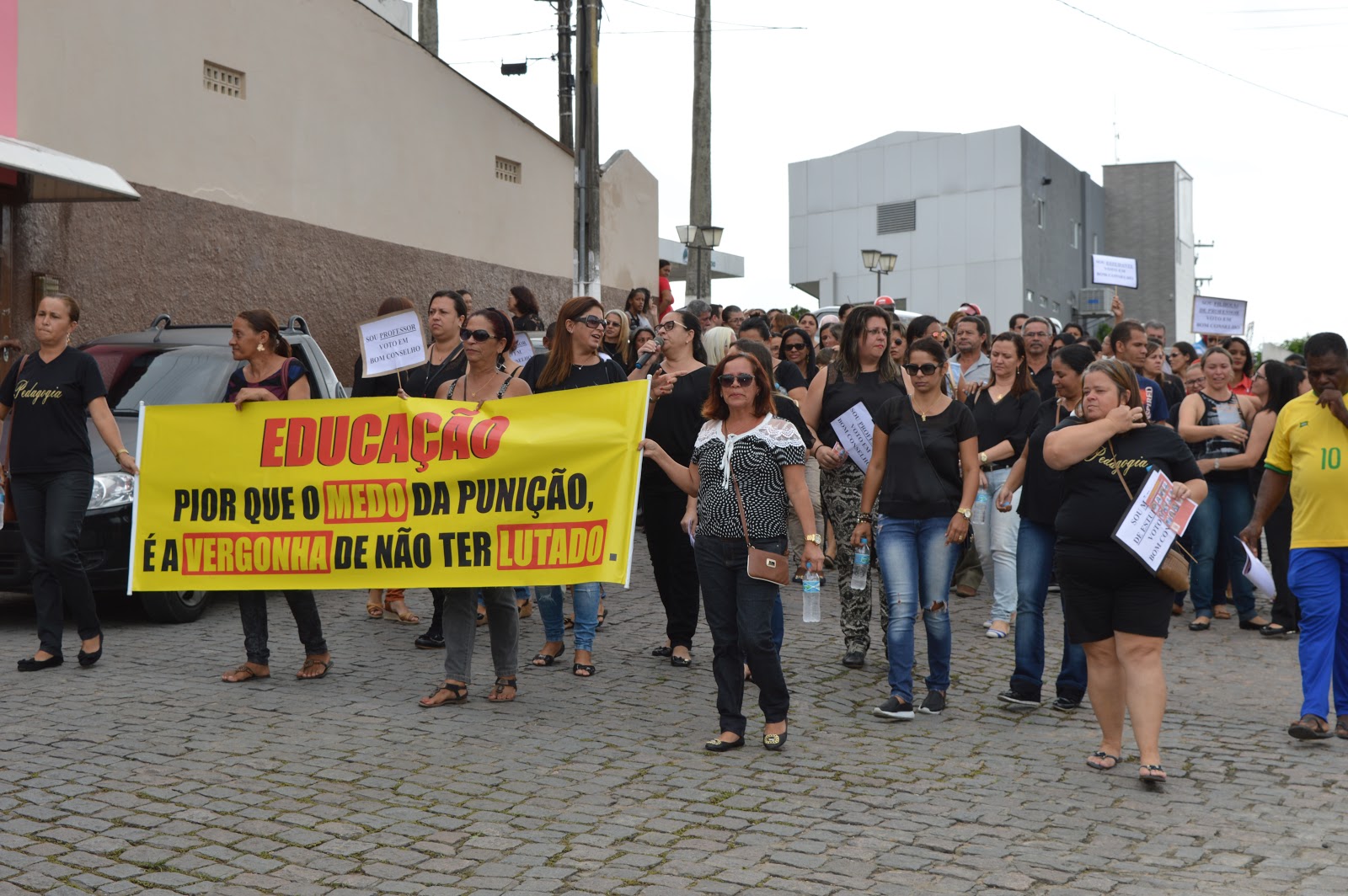 | PROFESSORES VESTIDOS DE PRETO EM SINAL DE LUTO PELA EDUCAÇÃO |