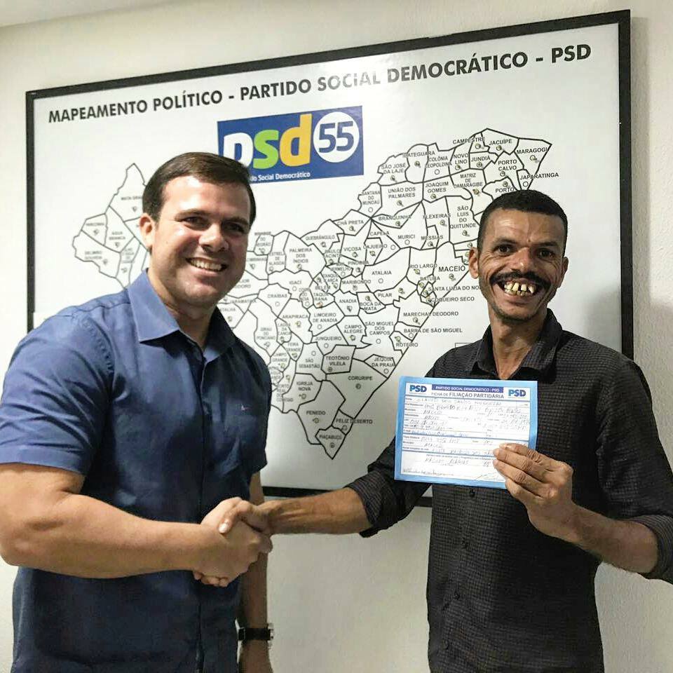 “Na sede do PSD, em Maceió, Dinho abonou sua ficha de filiação ao partido visando o pleito eleitoral de 2018. Desde já, quero agradecer ao novo membro do PSD Alagoas que agora integra o quadro de filiados”, escreveu Beltrão em suas redes sociais. Cláudio dos Santos Nogueira, o famoso Papa-Capim, planeja disputar um cargo nas eleições de 2018.