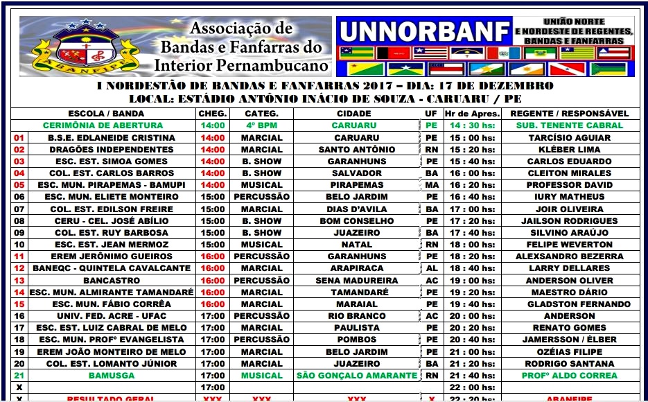 SAIU A TABELA DO I NORDESTÃO DE BANDAS E FANFARRAS DIA 17 EM CARUARU : A TROVÃO AZUL VAI ESTAR LÁ!