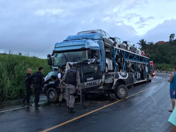 Corpos de PMs mortos em acidente na BR-101, em Alagoas, são levados em carro dos bombeiros para Pernambuco