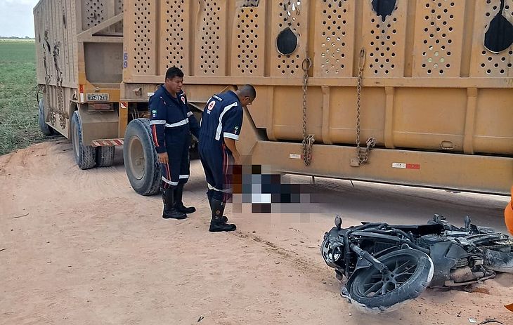 Militares da 5ª Companhia Independente estiveram no local e informaram a reportagem que o motociclista colidiu com a primeira parte do veículo e em seguida atropelado pelas duas partes seguintes.