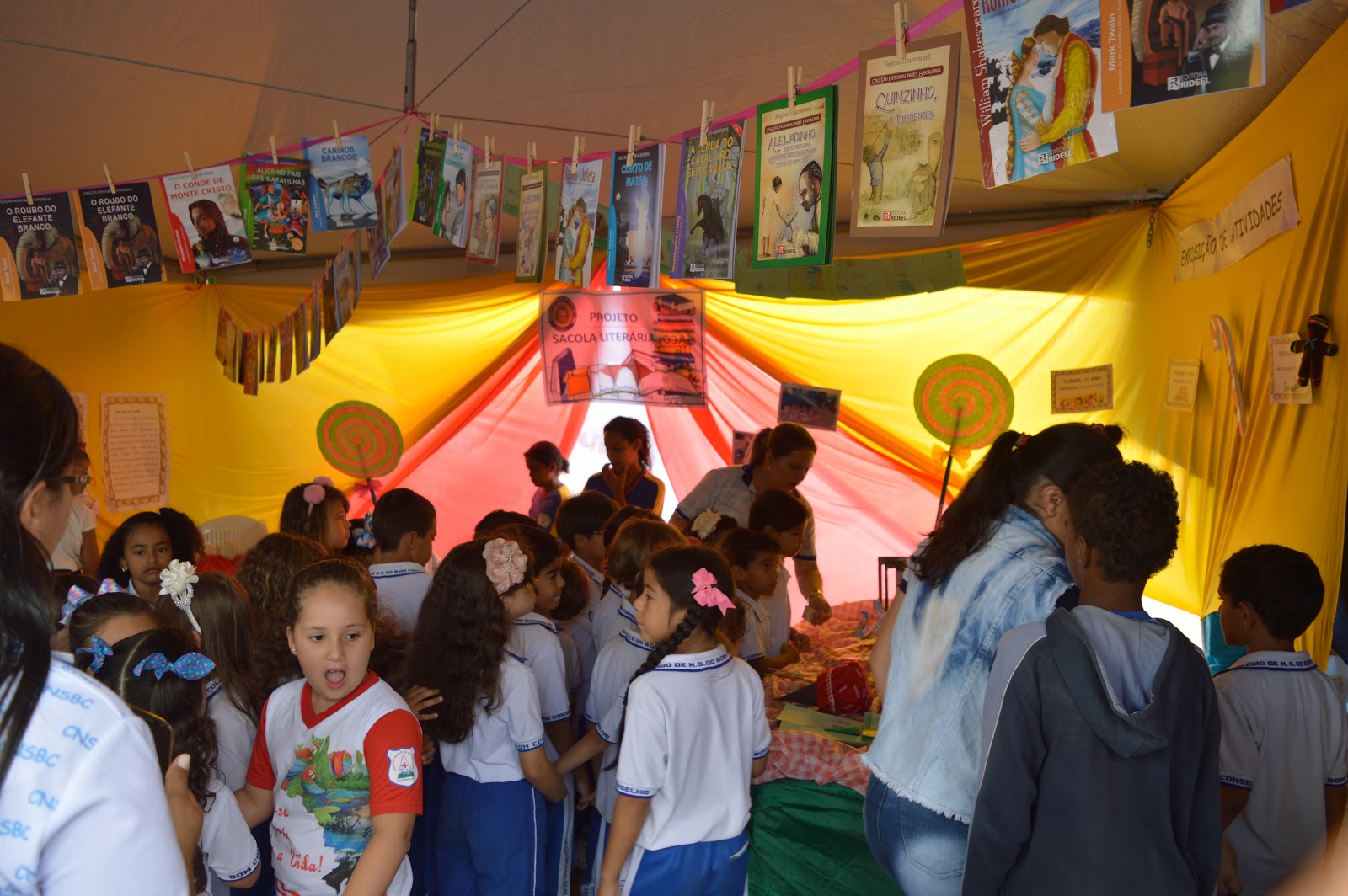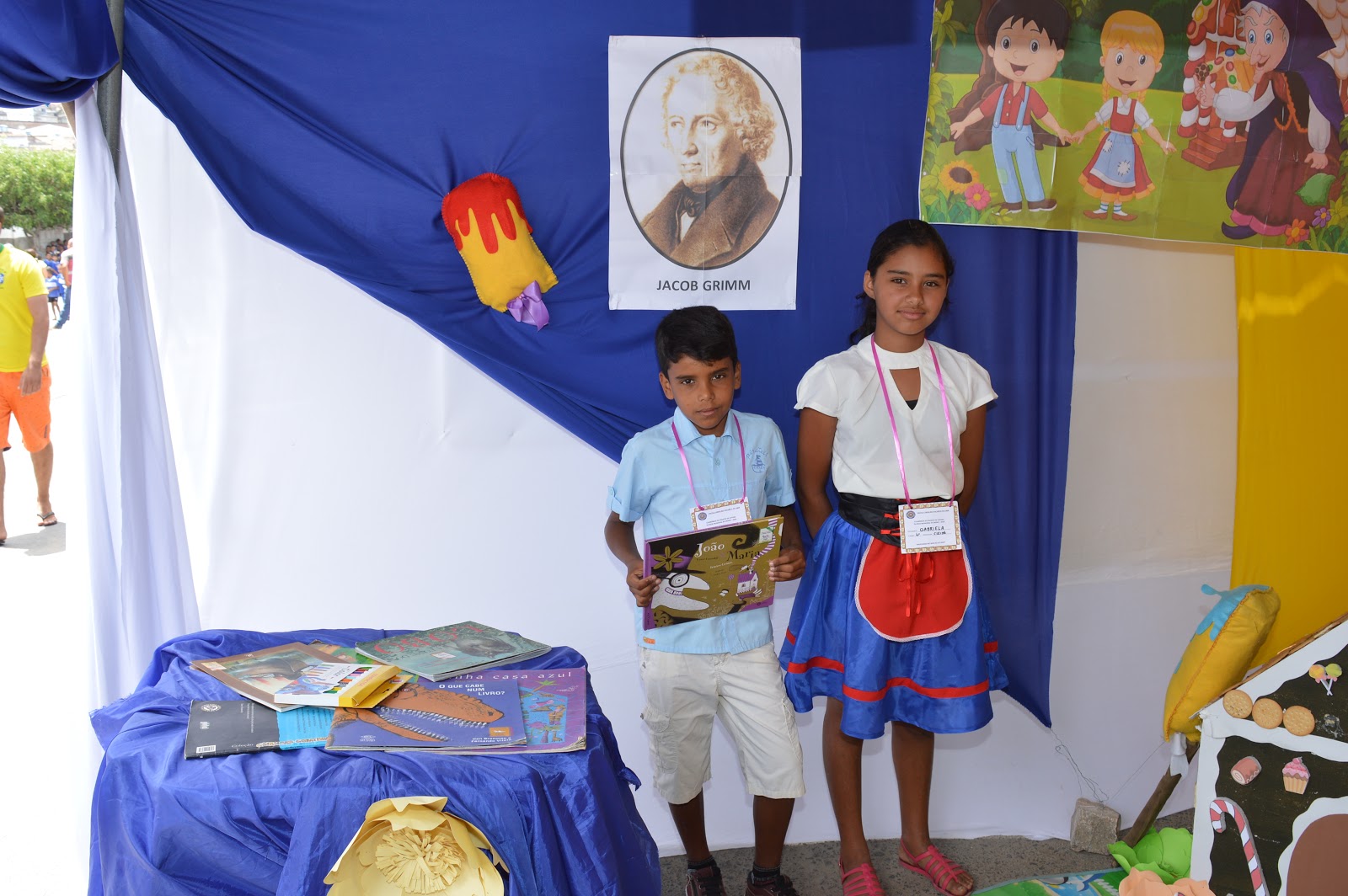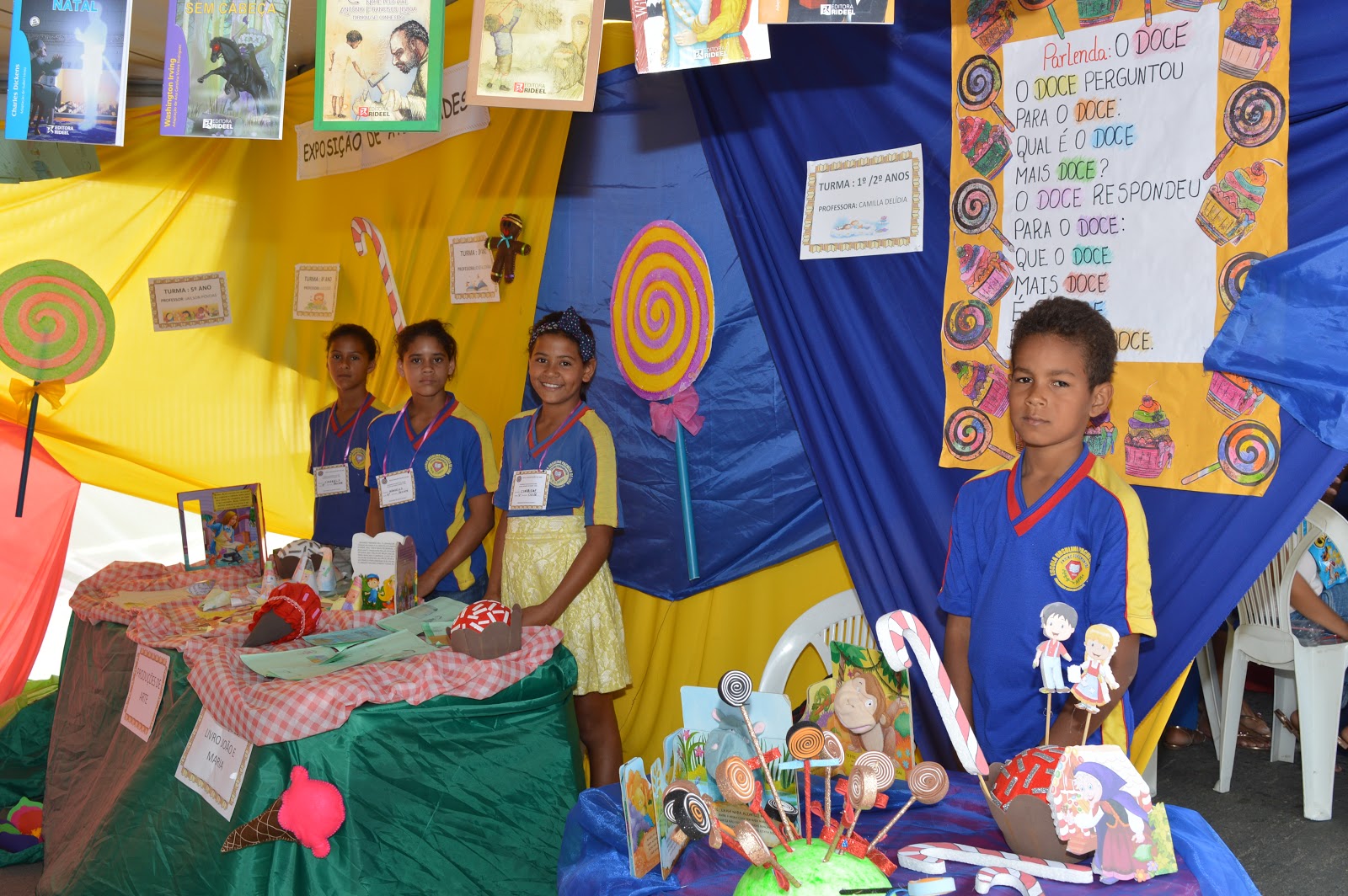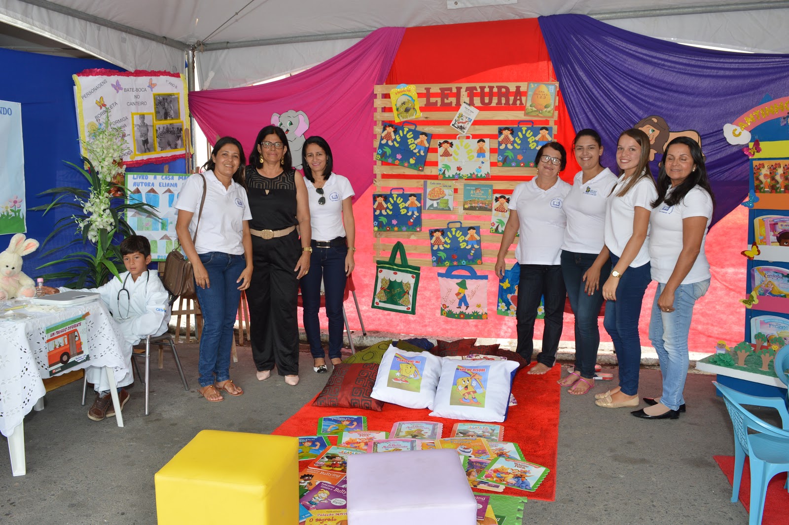 Abordando o tema: Navegando no mar de Leituras, os estandes ali montados trouxeram para os visitantes a oportunidade de conhecimento literário, onde alunos representaram personagens das histórias infantis.