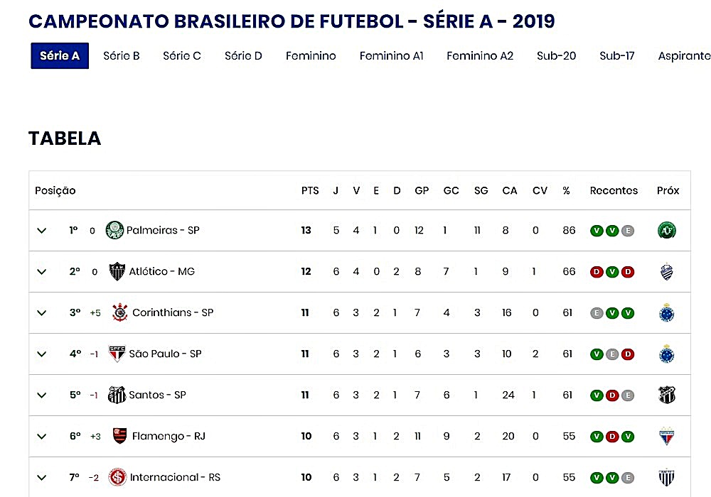 A CBF retirou na tarde desta quarta-feira os três pontos da vitória do Palmeiras sobre o Botafogo – por 1 a 0 – da tabela oficial do Campeonato Brasileiro. O Superior Tribunal de Justiça Desportiva (STJD) ordenou que a entidade não homologasse o resultado em função de recurso do Botafogo contestando uma possível infração ao protocolo do árbitro de vídeo, o VAR. Dessa forma, o Palmeiras, ainda líder com 13 pontos, fica por ora somente um à frente do Atlético-MG, que tem 12.