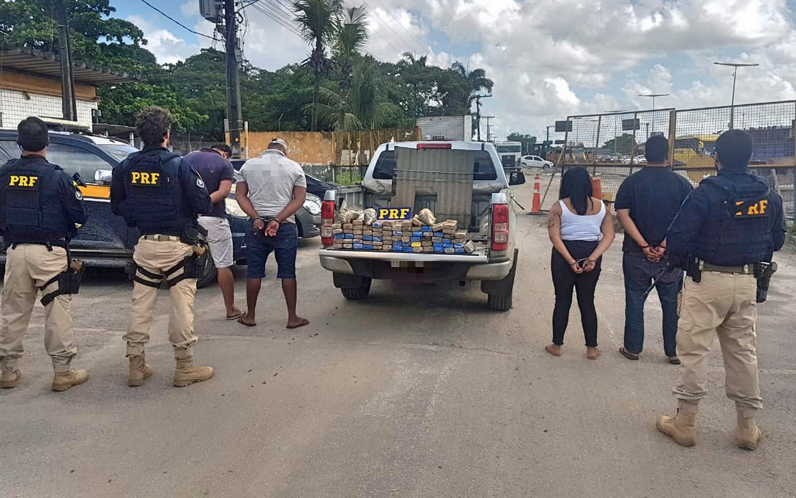 Ainda segundo a PRF, o grupo foi preso em dois veículos. Primeiro, policiais do Núcleo de Operações Especiais da corporação abordaram um carro ocupado por dois homens e, em seguida, a caminhonete, ocupada por um homem e uma mulher. No segundo carro, foram encontrados 71 tabletes de maconha prensada.