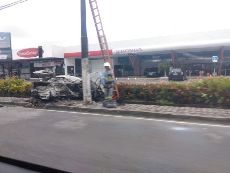 Um motorista morreu carbonizado, na madrugada desta quinta-feira (8), após colidir o carro em um poste e pegar fogo na avenida Durval de Góes Monteiro, no Tabuleiro do Martins, em Maceió. O Corpo de Bombeiros Militar (CBM/AL) foi acionado para a ocorrência e combateu o incêndio.