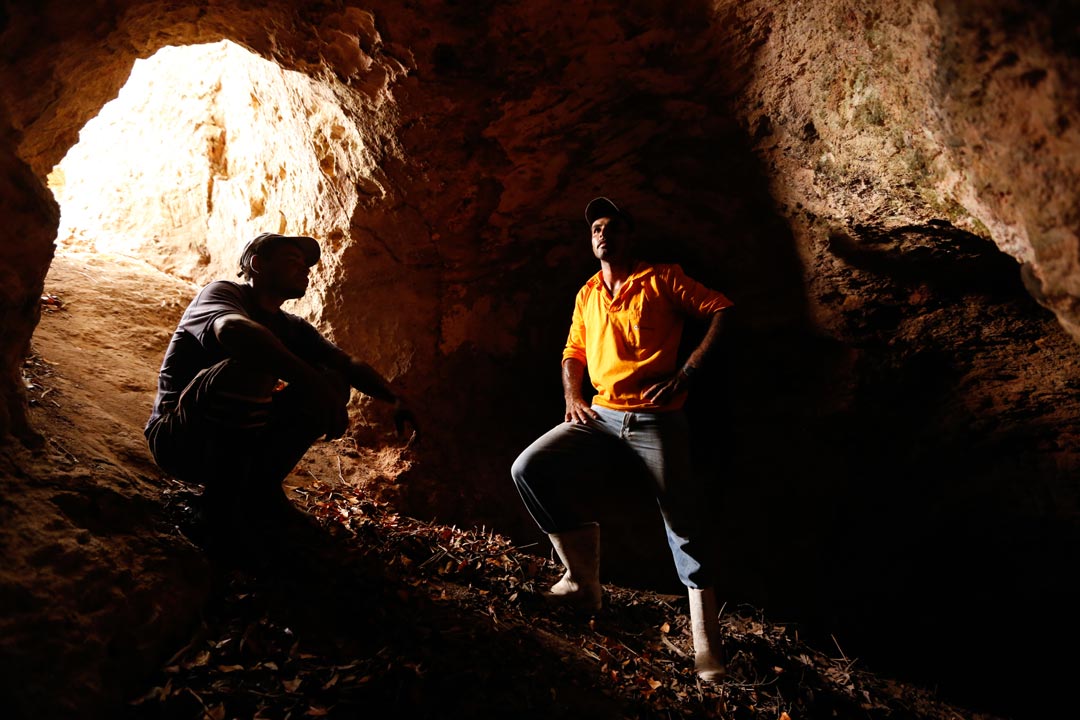Após passar pela porteira, uma caminhada subindo a serra leva até a caverna. E não é muito fácil encontrar o lugar certo para entrar nela. Lá dentro, espaço suficiente para acolher algumas pessoas. Ainda é possível chegar até o outro lado, deixando o esconderijo por outra saída. É uma espécie de cabana natural, toda de pedra e camuflada pela vegetação.