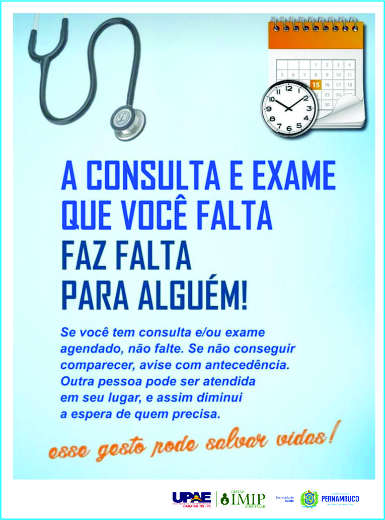 A Consulta que você falta, faz falta para outro paciente na UPAE Garanhuns.